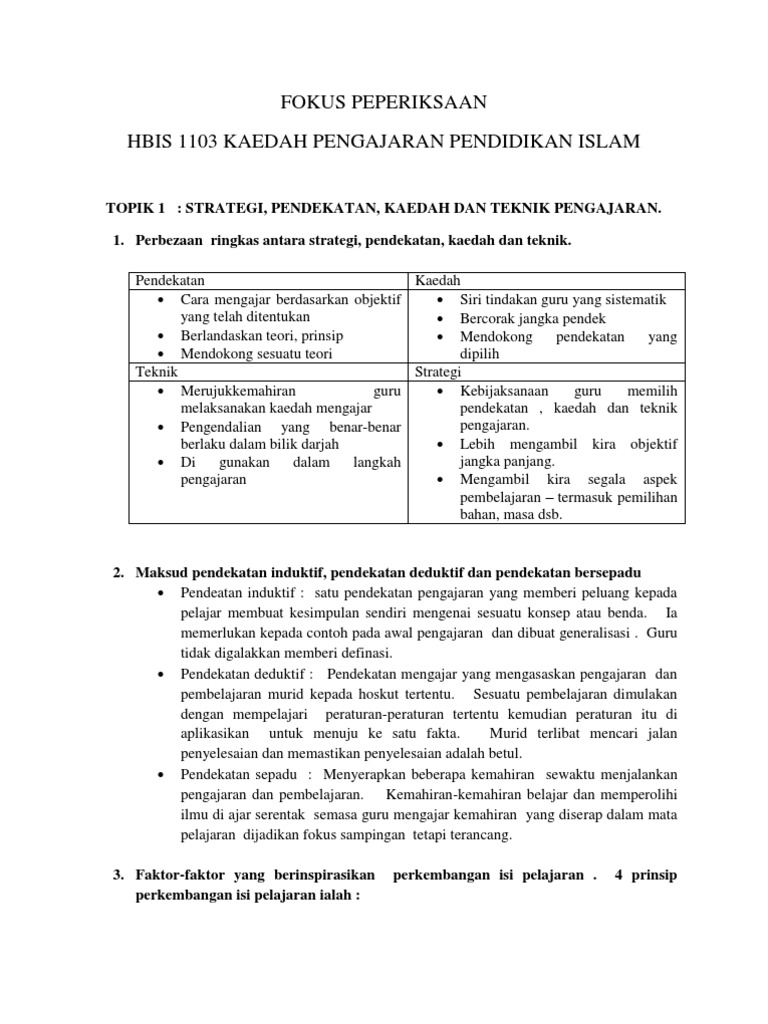 Banding Beza Pendekatan Strategi Kaedah Dan Teknik Pengajaran Pdf